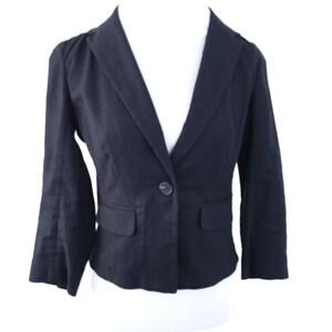 Loft One Button Blazer Linen Blend Black Size 2 Career Casual Work Jacket