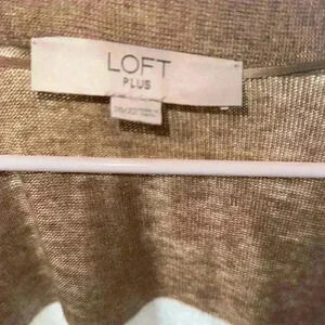 Loft Open Front Cardigan Tan & Cream Striped Knit Lightweight Sweater sz 20/22