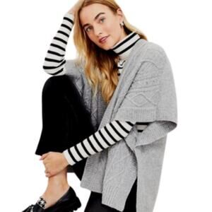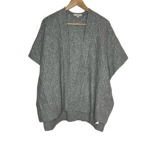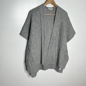 Loft Open Front Kimono Poncho Sweater XS/S Gray Short Sleeve Cross Knit