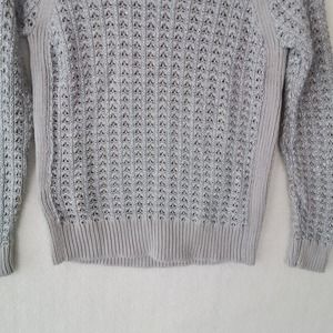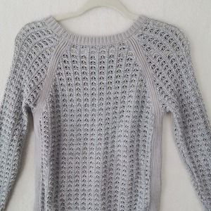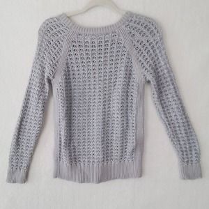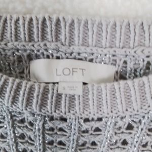 Loft Open Knit Sweater Size Small in Beige w/ Metallic Silver Threads