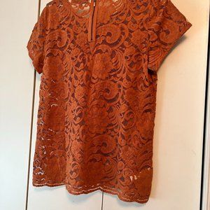Loft Orange All Over Lace Short Sleeve Blouse - Medium