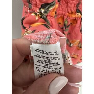 Loft Orange Harvest Smocked Waist Coral Linen Blend Dress Size Medium