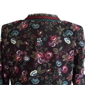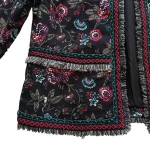 Loft Outlet Black Red Blue Floral Fringed Embroidered Trim Open Front Blazer Jacket