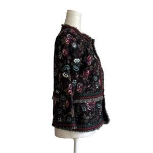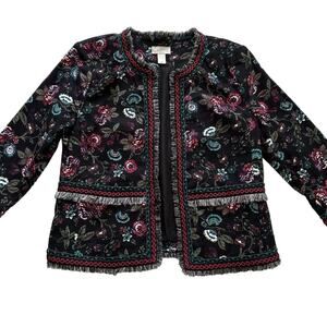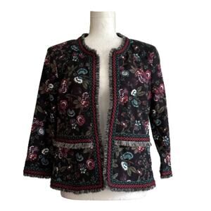 Loft Outlet Black Floral Fringe Embroidered 3/4 Sleeve Open Front Blazer Size 8