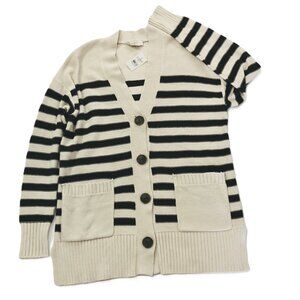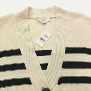 Loft Outlet Cardigan Sweater Button Up Size S Striped Brown Tan 100% Cotton