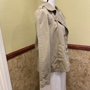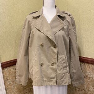 Loft Outlet Double Breasted Lightweight Jacket Beige Tan 100% Cotton Boxy Medium