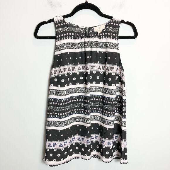 Loft outlet sleeveless blouse. Gray with light floral print. Small keyhole at back.