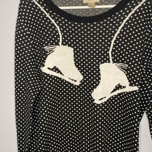 Loft Outlet Ice Skates Black and White Polka Dots Sweater Size XL