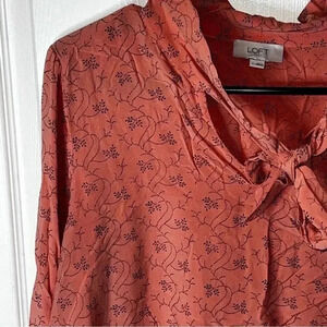 Loft Outlet Large Light Orange and Black Tie Blouse Lightweight Packable