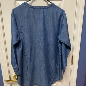 Loft Outlet Lounge Womens XS Blue Chambray Tunic High low V Neck Casual