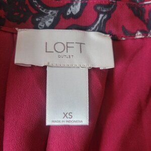 Loft Outlet Midi Dress, XS, Sleeveless, Red Floral Print, V-Neck, Tie-Back, EUC