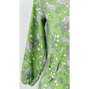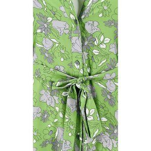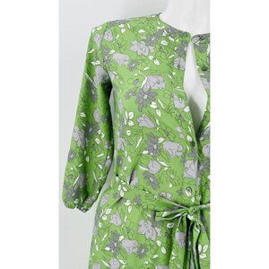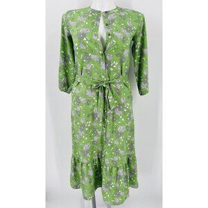 Loft Outlet Midi Flowy Dress Size XS Tie Waist 3/4 Sleeve Ruffle Hem Green Grey