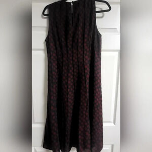 Loft Outlet - NWOT- Black A-Line Dress with Red Polka Dots, Size 6, elegant, feminine and classy, fitted bodice, sleeveless, can be worn in summer as is or in fall or winter with a sweater. Perfect for work or a night on the town, Zipper back.