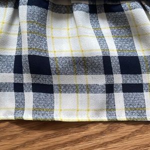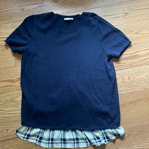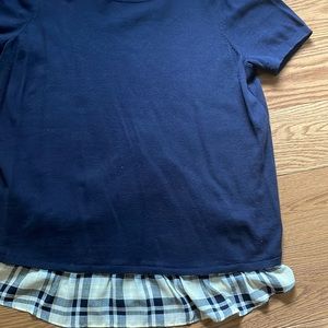 Loft Outlet Navy short sleeve sweater with plaid ruffle hem