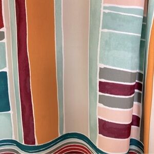 Loft Outlet Petite Abstract Block Stripe Print Multi Colorful Green Gold Burgundy Gray Cream Pink Shift Dress. Sz SP