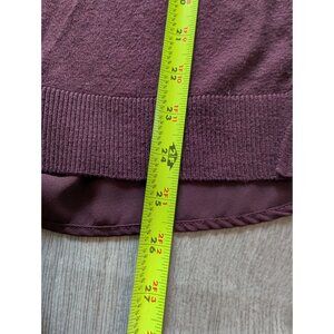 Loft Outlet Plum Mixed Media Sweater Top Size L Lightweight Knit & Sheer Back Wo