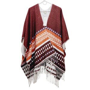 Loft Outlet Reversible Wrap Poncho With Fringe Geometric Print one Size