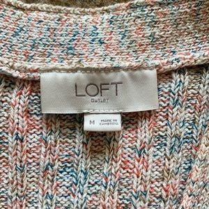 Loft Outlet multi-colored marled ribbed cardigan. Perfect to pair with cami or tank tops. Pink/blu/cream marled coloring.