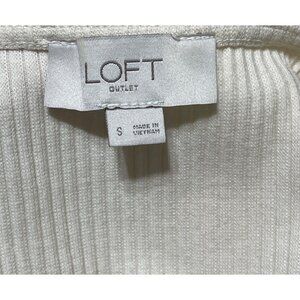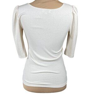 Loft Outlet Ribbed Top Size S Small Cream Scoop Neck Puff Sleeve