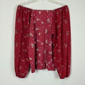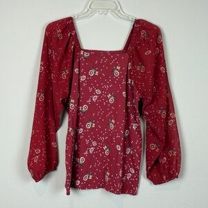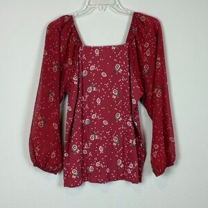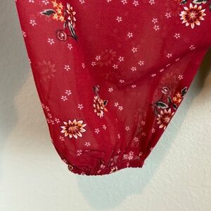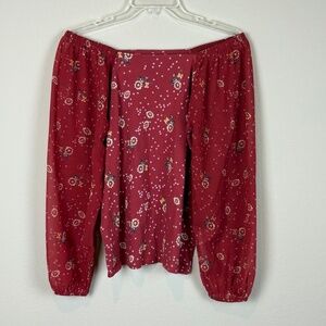 Loft Outlet Rust Floral Wide Neckline Sheer Long Sleeve Peasant Blouse; Size M