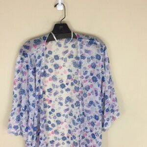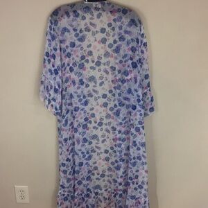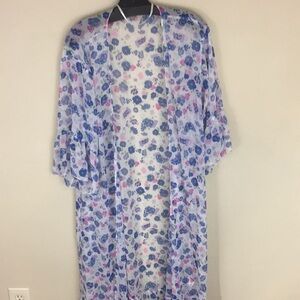 Loft Outlet Semi-Sheer Floral Duster Robe with Ruffle Size XS/S