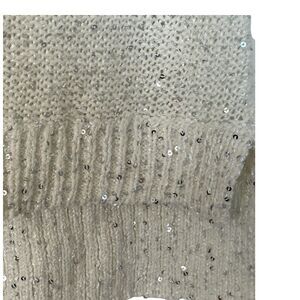 Loft Outlet Sequin 3/4 Sleeve White Lightweight Tunic Sweater SP
