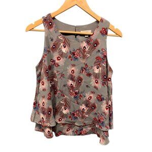 Loft Outlet Sleeveless Tiered Top Women’s Size S Gray Peacock Feather Floral NWT