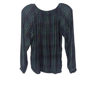 Loft Outlet Tartan Navy Green Plaid Tunic w/Gold Thread Accent, Size M