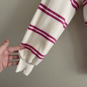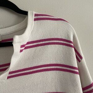 Loft Outlet Women Sz S White/Pink Striped Split V-Neck 3/4 Sleeve Sweater