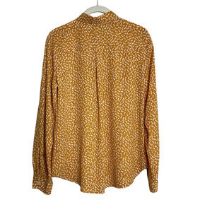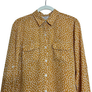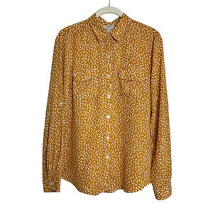 Loft Outlet Women's Blouse Small Mustard-Orange Ditsy Floral Chiffon Button Up Cottagecore