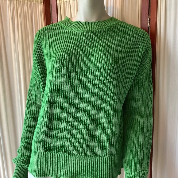 This Loft Outlet sweater is a kelly green with a crew neck. Ribbing