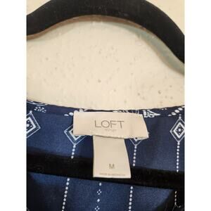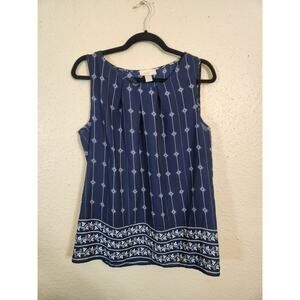 Loft Outlet Women's Navy Blue Geometric Plated Round Neck Sleeveless Blouse M