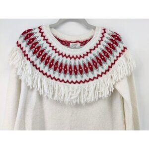Loft Outlet Womens Pullover Sweater Fair Isle Fringe Acrylic Wool Red/ White SIz