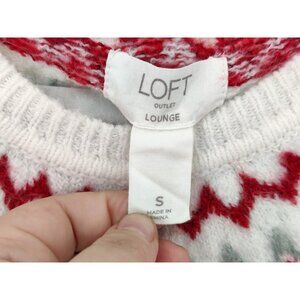 Loft Outlet Women's Pullover Sweater Fair Isle Fringe Acrylic/Wool Red/ White in good condition. Size S