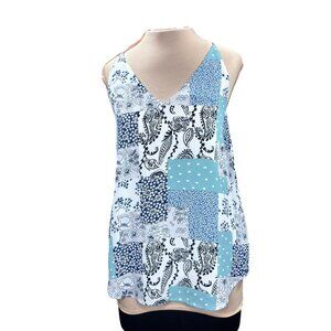Loft Outlet Womens Sleeveless Patchwork Tank Top S Polyester Blue & White