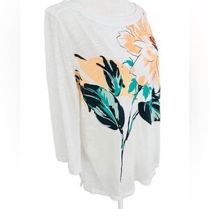 Loft Outlet floral 100% cotton boatneck tee, 3/4 sleeves size M. Very lightweight. Side slits. Approximate measurements are pit to pit 21.5”, length from shoulder approximately 25”.