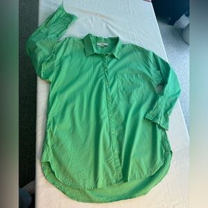 Loft Oversized Cotton Blend Button Down Pretty Green Size Large