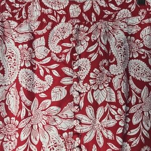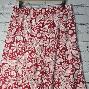 Loft Paisley Button Pull On Midi Skirt Front Silt Tango Red Cotton Blend Size M