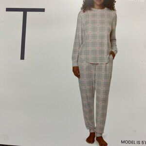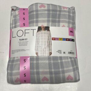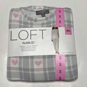 Loft Pajama Set Gray Pink Heart Pattern Super Soft Knit Fabric Womens SM NWT