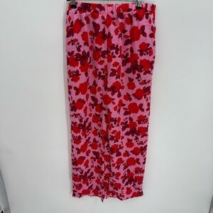 Loft Pajamas Red Pink 2 piece set Satin Woman’s Size Medium Floral collared