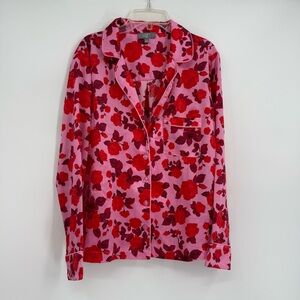 Loft Pajamas Red Pink 2 piece set Satin Woman’s Size Medium Floral collared. Button front.