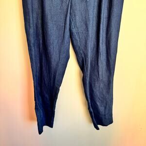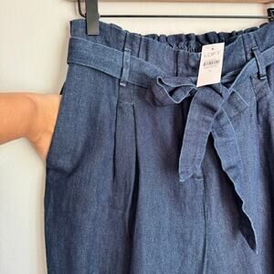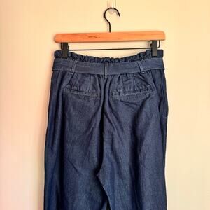 Loft Pants Size Medium Denim Paperbag Tie Elastic Waist Linen Lyocell Blend