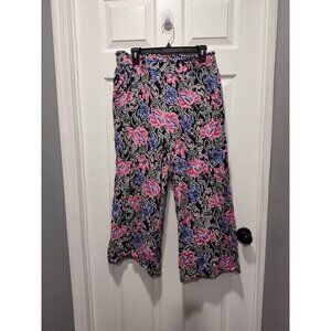 Loft Pants Womens Medium Black Pink Fluid Wide Leg Floral Spring Bloom Pockets