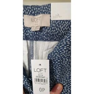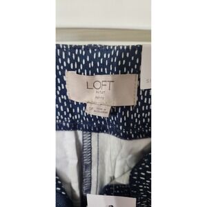 These Loft Pants for women are a modern and stylish addition to any wardrobe. The skinny ankle mid rise design in a stretchy ponte fabric offers comfort and flexibility, perfect for a variety of occasions from casual outings to workwear and even business meetings. The navy blue color and geometric pattern add a touch of sophistication, while the pockets and flat front details enhance the overall appeal. With a size 0 petite fit and a 27-inch inseam, these pants are a versatile choice for the fashion-forward woman looking for a chic and trendy option.