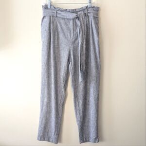 Loft Paperbag Pull On Pants Striped Linen Belted Size Medium