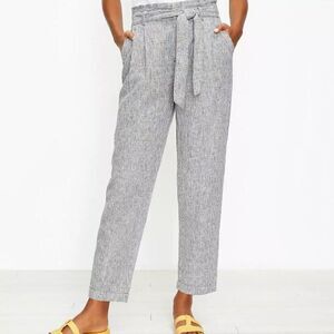 Loft Paperbag Pull On Pants Striped Linen Belted
