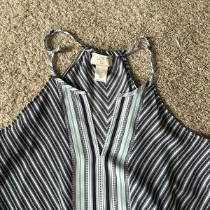 Blue, white and mint patterned Racerback tank top with v cut out in the front. Gently used! Fabric has no stretch.