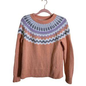 Loft Peach Lavender Fair Isle Wool Blend Sweater Size M