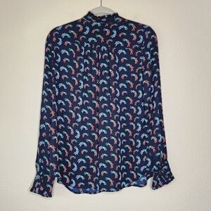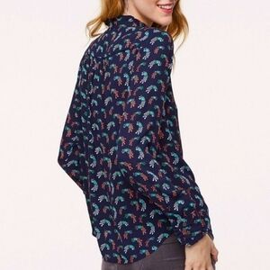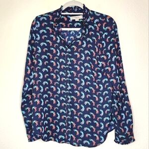 Loft Peacock Utility Ruffle Button Down Blouse M
