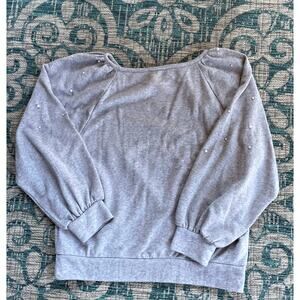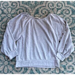 Loft Pearl Embellished Gray Sweatshirt Top - Size XL